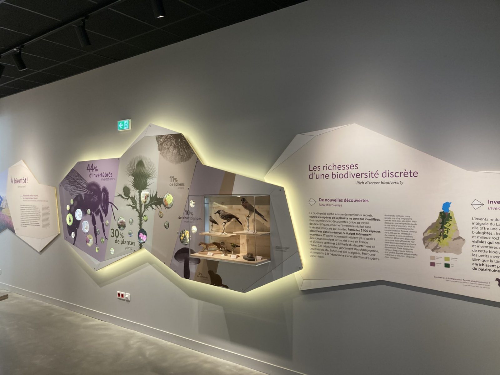 Biodiversiteit, de geschiedenis van de bescherming van de natuur en het massief, en wetenschappelijke activiteiten in het integrale reservaat van Lauvitel worden op een ludieke en interactieve manier gepresenteerd. De verschillende zones nodigen bezoekers uit om in de huid te kruipen van onderzoekers die gespecialiseerd zijn in de studie van gletsjers, bodems, dood hout of ongewervelde dieren... of om na te denken over de impact van vrijetijdsactiviteiten in een beschermd natuurgebied (wandelen, bivakkeren, zwemmen...).