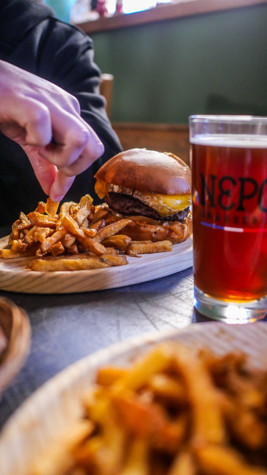 Op het menu staan royale hamburgers, huisgemaakte gerechten en lokale producten, bereid met smaak en eenvoud. Alles non-stop geserveerd, van het ontbijt tot de laatste ronde. De plek trekt zowel passerende wandelaars als trouwe locals en lange geïmproviseerde tafels maken deel uit van het decor.